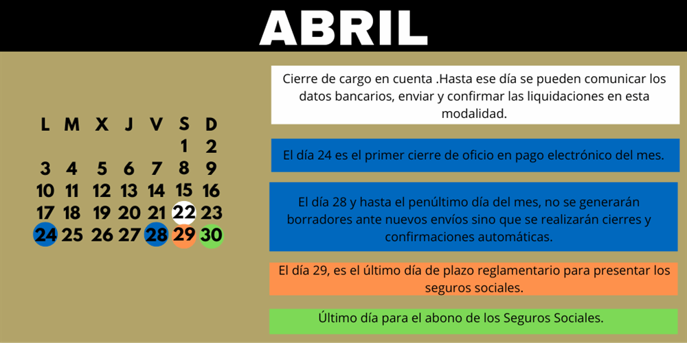 El Sistema de Liquidación Directa tiene unas fechas que se repiten casi todos los meses y que debemos tener presentes a la hora de presentar las liquidaciones de la Seguridad Social.