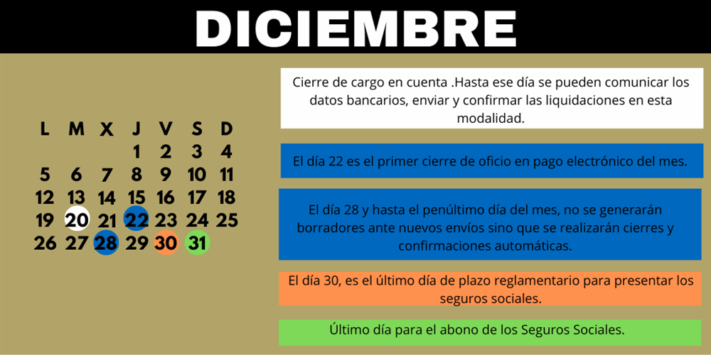 Detalle del proceso y de los plazos en la modalidad de cargo en cuenta, confirmación de oficio y pago electrónico para este mes de diciembre de 2022: