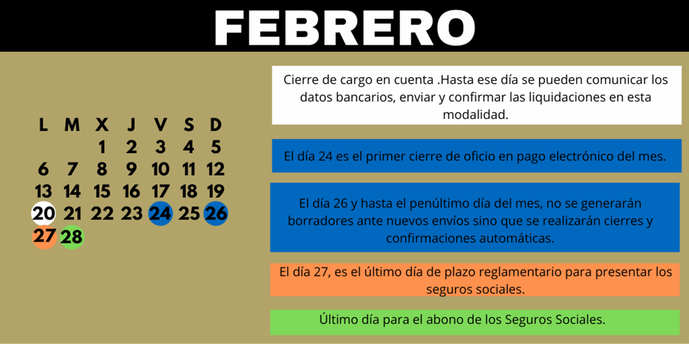 Detalle del proceso y de los plazos en la modalidad de cargo en cuenta, confirmación de oficio y pago electrónico para este mes de febrero de 2023: