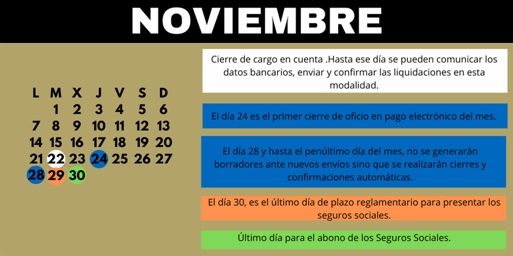 Detalle del proceso y de los plazos en la modalidad de cargo en cuenta, confirmación de oficio y pago electrónico para este mes de noviembre de 2022: