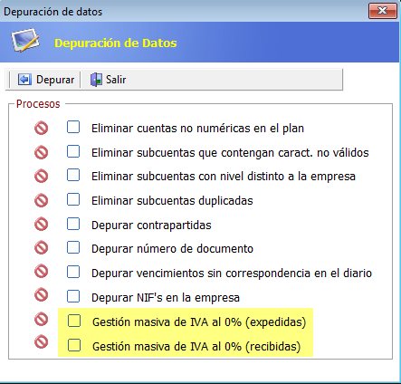 Gestión masiva del IVA al 0%