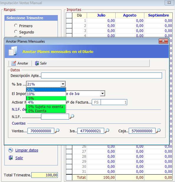 A partir de septiembre de 2023 se incorpora el tipo impositivo del 0% (además del 5%) a la imputación de ventas: