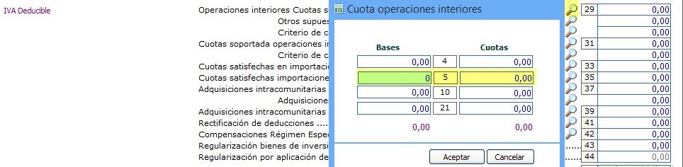 Al generar el 303 en Glasof podemos advertir que las bases y cuotas correspondientes al IVA del 5% figuran de forma separada al resto de bases y cuotas, tanto en el apartado relativo al IVA devengado como en el relativo al IVA deducible (al acceder a la lupa que figura a la derecha de cada apartado). Este desglose facilita las posibles comprobaciones por parte del usuario y la posterior importación de bases y cuotas al modelo 390; pues deberán ir identificadas de forma separada al resto de bases y cuotas del modelo.