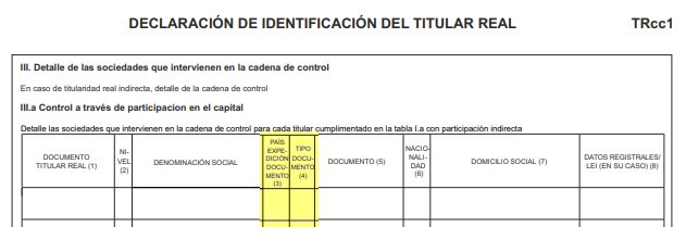 Documentación del Registro Mercantil sobre la cumplimentación de la "Declaración de identificación del titular real":