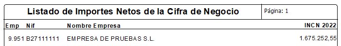 Se incorpora al programa de Contabilidad 2022 un nuevo listado. Su finalidad es obtener el Importe Neto de la Cifra de Negocios (INCN) a partir de la casilla 255, incluida en la cuenta de Pérdidas y Ganancias (resultados de explotación), del Impuesto sobre Sociedades (IS).