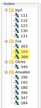 Podemos observar que en el catálogo situado en la parte izquierda de "Impresos Hacienda" figuran los dos nuevos modelos, encuadrados dentro del apartado de IVA:
