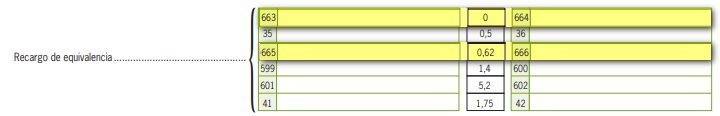 Se añaden, en la página 2, casillas nuevas para poder consignar los diferentes tipos de recargo de equivalencia vigentes durante el ejercicio 2023, es decir, el recargo de equivalencia del 0% para el tipo impositivo del 0% y el recargo de equivalencia del 0,62% para el tipo impositivo del 5%.